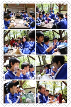 開校式の後はお昼ご飯を食べてハイキングに備えます