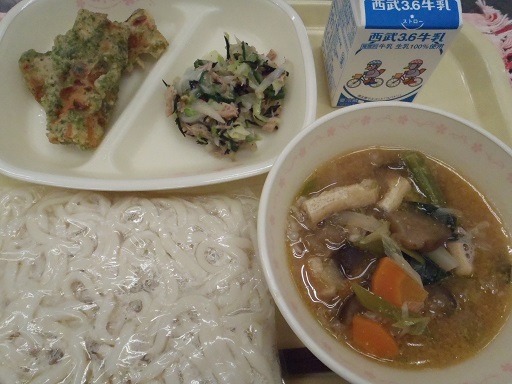 「田舎うどん」は、なすが入ったうどん汁でみそ味が特徴です。仕上げに加えたごまの風味がうま味を増しています。