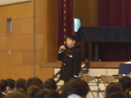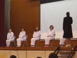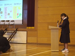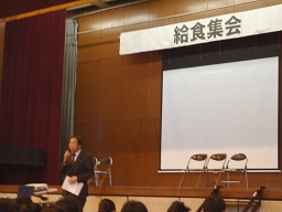 前半は毎日給食を作っていただいている調理員さんへの感謝の会。後半は給食委員による発表がありました。