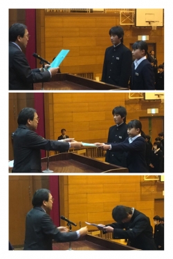 長いようで短かった1年間が終わりました。校長先生より学年代表者に修了証が渡されました。