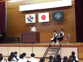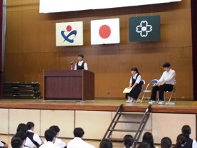 な態度で、思いを堂々と語ってくれました。代表生徒の中には、たいへん感心なことに、原稿をまったく見ずに、発表をしている生徒がい