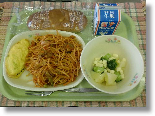 牛乳 パインパン スパゲティナポリタン オムレツ