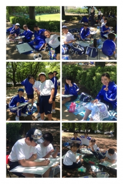 中央公園では1年生が写生会です。