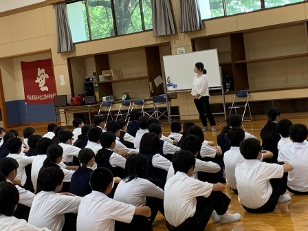 社会体験チャレンジについて代表から話しがありました。先生の話では、①社会体験チャレンジ②学習面③学校総合体育大会についてお話がありました。