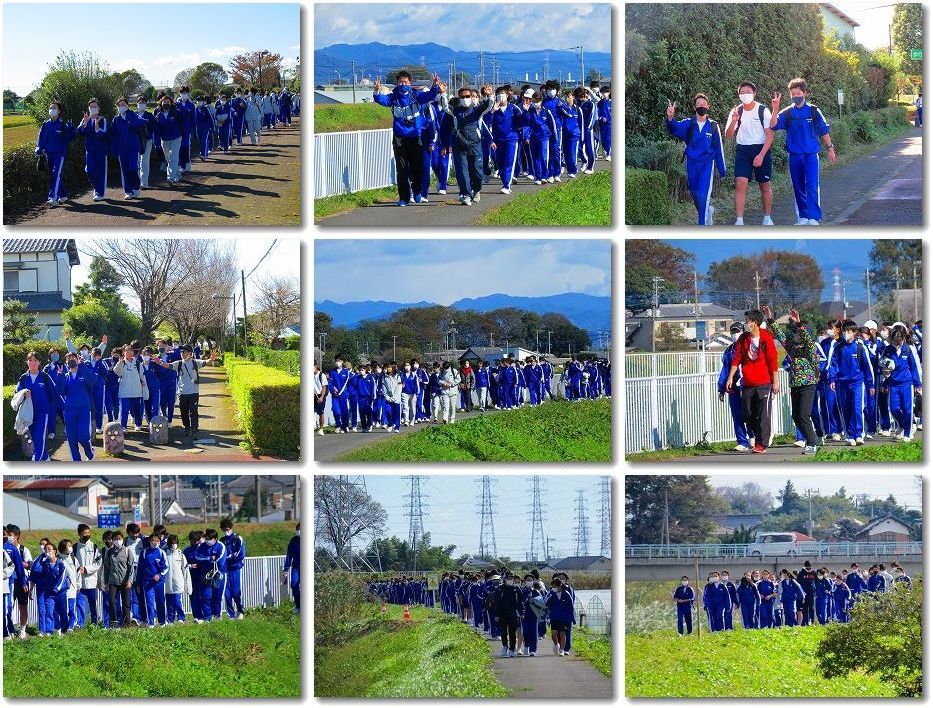 子供達はよく歩いてくれました。当日は、高校説明会やワクチン接種、漢検の受験日、家庭の用事など、様々な用事がある中、実際には約480名もの生徒が歩き、