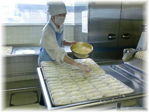今日のマヨネーズ焼きは720枚の魚に塩、コショウ、酒、マヨネーズで下味をつけて、パセリを散らし、1切れずつカップに入れてチーズとレモンをのせて焼きました。手間と時間をかけた料理でした。調理員さんの愛がたっぷりの給食でした。