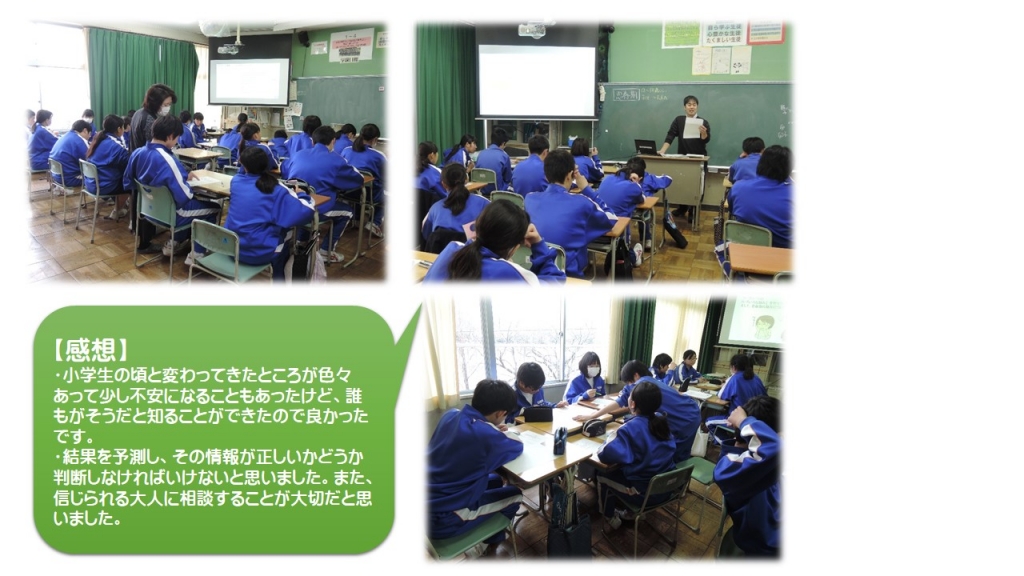 1年生は「思春期の心と身体」、「性情報の正しい選択」について授業を行いました。