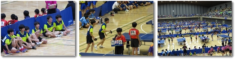 卓球は所沢市民体育館で行われました。体育館に入ると、その人数の多さに圧倒されてしまいました。我が上中男子卓球部は1回戦を