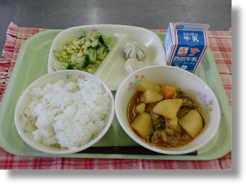 17日(木)の給食「じゃが豚キムチ」