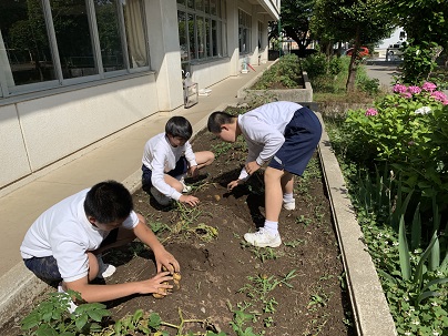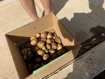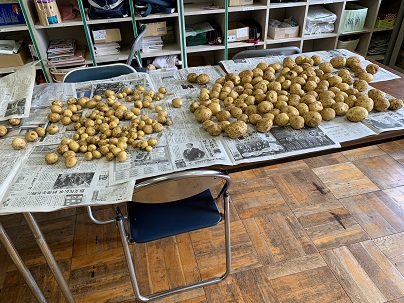 暑い中、一生懸命じゃがいも堀をしてくれました。洗って干したり、大きさを選別して給食室へ届けてくれました。ありがとうございました。