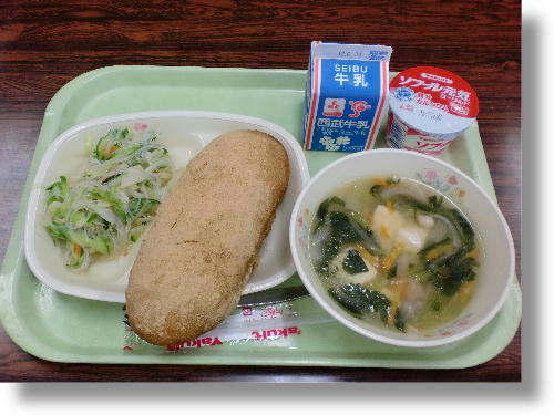 牛乳 きな粉揚げパン 豆腐スープ 春雨サラダ ヨーグルト