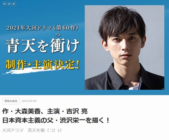 ※詳しくはこちらをご覧ください。⇒2021年大河ドラマ(第60作)『青天を衝け』制作・主演決定!
